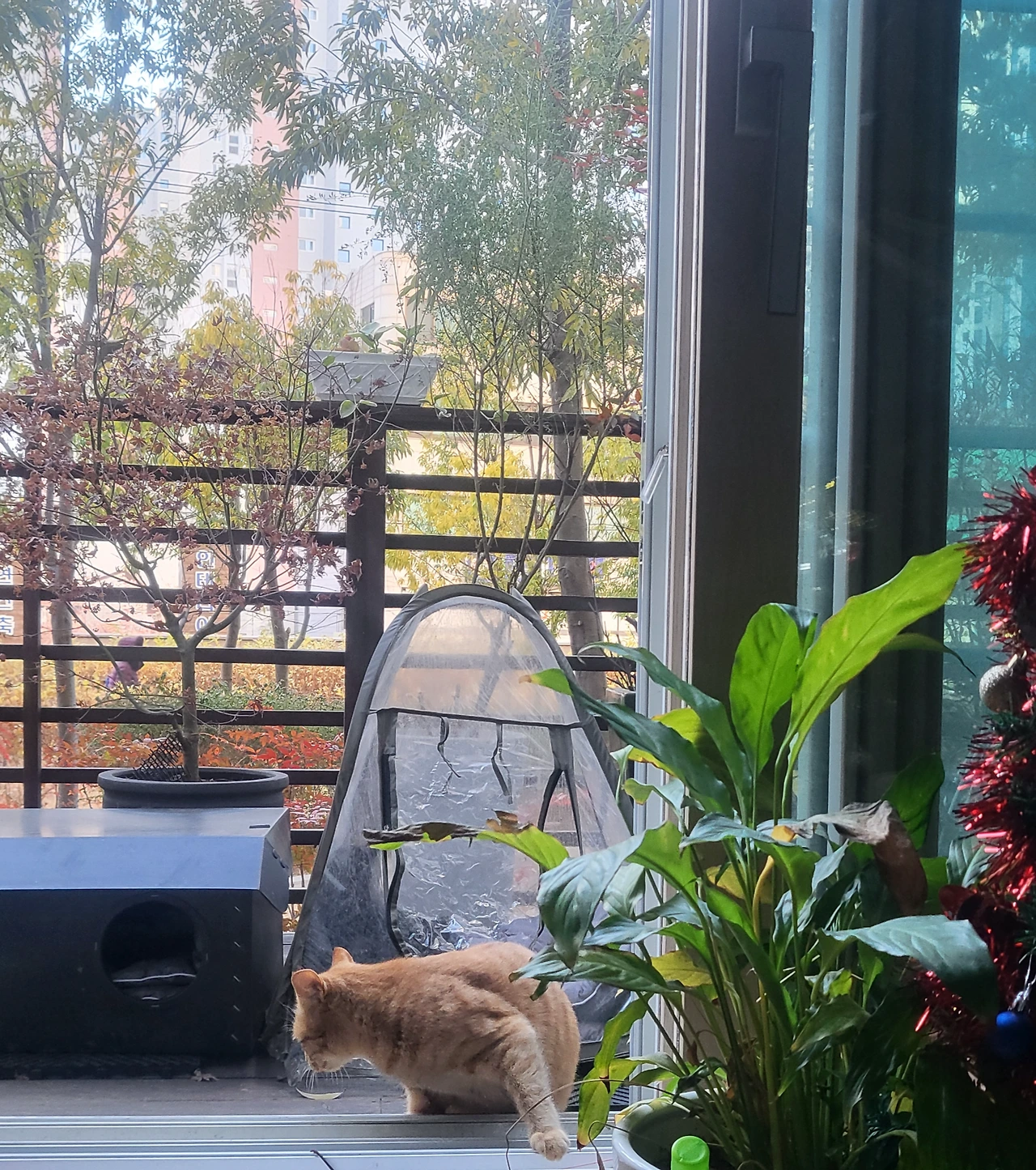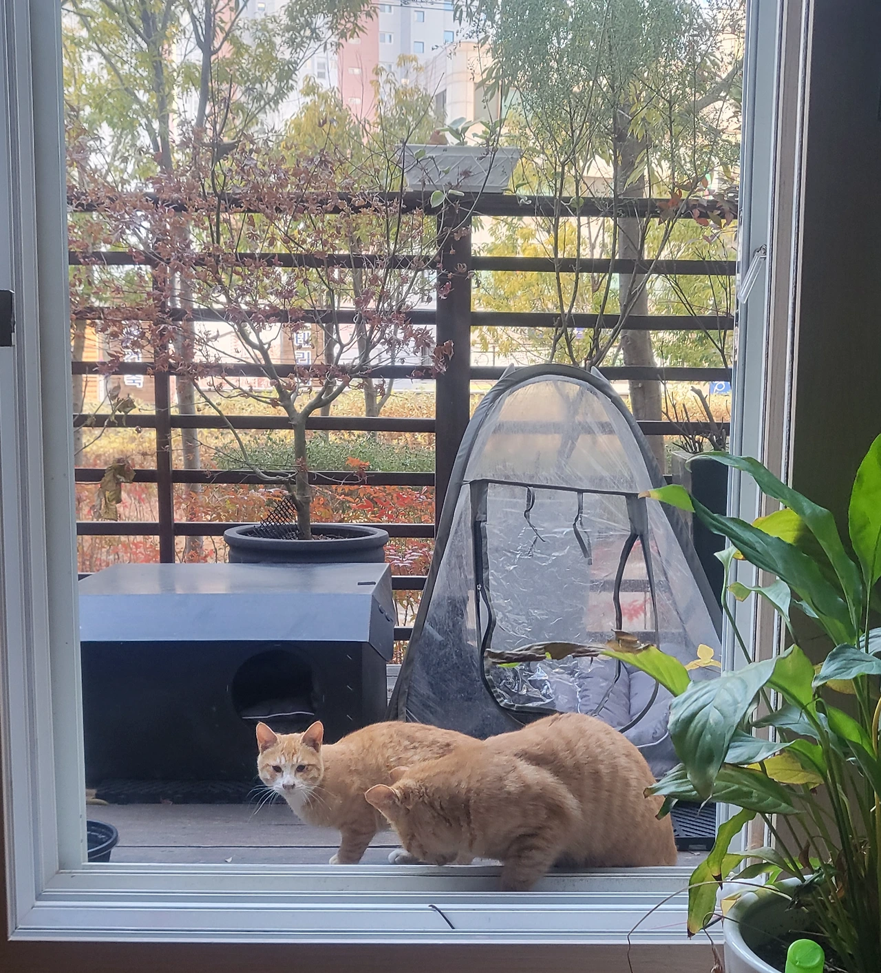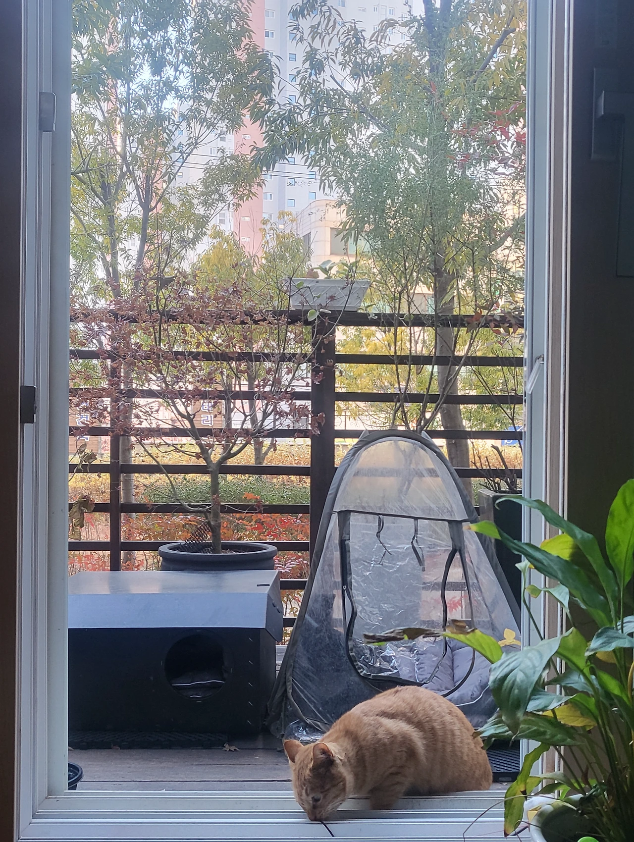 나는 치즈가 들어온다면 언제든 환영이야, 하고 말해주었다. 치즈는 조심스럽게 냄새를 맡다가 안을 들여다보곤 겁이 났는지 다시 나갔다. 요며칠 부쩍 추웠기에 안의 공기가 따뜻하게 느껴졌을 것이다.