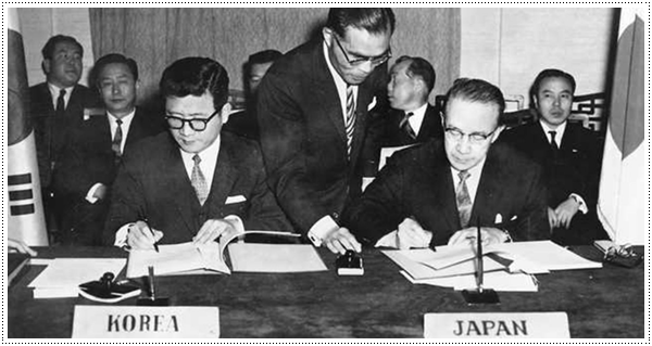 1965년 12월 18일 상오10시반 한국의 중앙청 제1회의실에서 두나라의 국교정상화를 최종적으로 매듭짓는 기본조약 및 협정에 의한 비준서를 교환했다.
