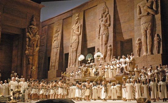 당시 오귀스트 마리에트의 시나리오를 베르디와 함께 작업했던 안토니오 기슬란초니가 다시 쓰고, 최고의 무대 효과를 위해 엄청난 재정이 뒷받침 되었다. 흔히들 수에즈 운하 개통 기념으로 초연된 오페라라고 알고 있으나, 물론 운하 개통을 기념하여 오페라를 만든건 맞지만, 바로 초연되지는 않았다. 수에즈 운하 개통시기는 1869년 11월 이며, 아이다가 초연된 시기는 1871년 12월 24일이다.