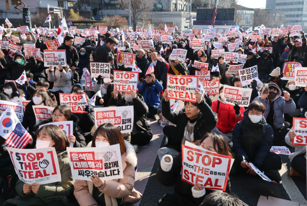 탄핵을 반대하는 자리에 성조기도 함께 흔드는 그들은