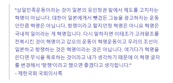 여기에 이승만 일당이 찬성하며 항쟁을 운동으로 바꾸어 제헌헌법에 그대로 실리게 된 것