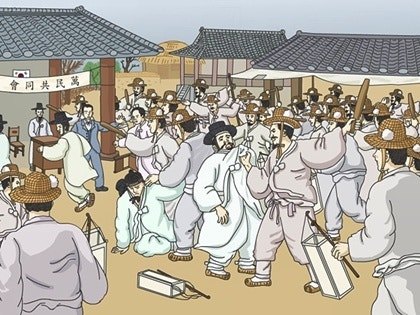 1898년 11월 정부의 외곽단체인 황국협회 등의 무고로 이상재, 남궁억 등 독립협회 간부 17명이 검거 투옥되고, 황국협회의 사주를 받은 천여 명의 보부상들이 독립협회를 습격했다. 고종은 칙령으로 양회 해산을 명령하였다.