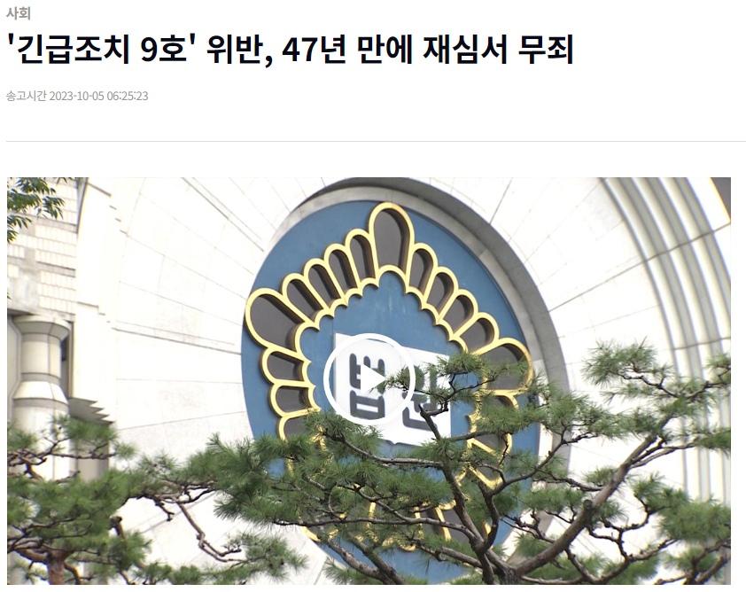 긴급조치 9호는 2013년 3월 21일 헌법재판소는 긴급조치 1·2·9호가 "국민의 기본권을 침해하고 현행 헌법에 어긋나 위헌"이라고 판시했으며, 이로 인해 2013년 7월 3일 고 김대중 전 대통령과 고 문익환 목사가 무죄를 선고 받았다.