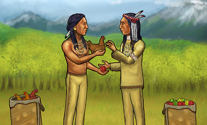그래서, 서로 필요한 물건을 교환하게 되는데