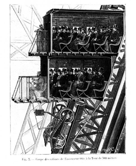 1854년 프랑스 만국박람회에서 에펠탑에 엘리베이터를 설치하여