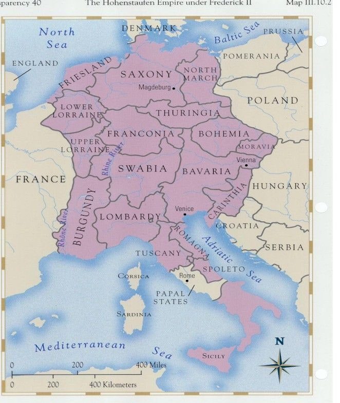 13세기 당시 이탈리아는 호엔슈타우펜 왕가가 지배하는 북부의 신성 로마 제국과 남부의 시칠리아 왕국이 있었다. 이 두 영토 사이에 끼어 있던 교황령은 이탈리아 반도에서의 세력을 확장하고자 하는 과정에서 호엔슈타우펜 왕가와 갈등을 일으켰다.