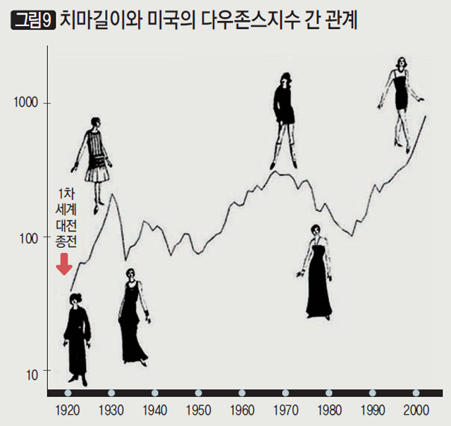 불황일때에는 비싼 스타킹을 살 수가 없어서 스커트가 길어졌다는 이야기다
