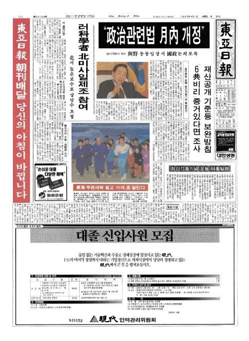 1980년 5월 18일 광주민주화운동의 시기에는 19~23일 초기 5일 동안 무사설(無社說)로 저항하였고, 1987년 박종철 고문 사건 연속 특종보도로 6월 민주항쟁을 촉발시켰으며 1987, 1992년 선거 당시 김대중 성향을 보임에 따라서 김영삼 정부 때까지 대표적인 야당지로 구분됐다.