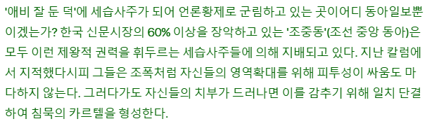 모두의 평가에 따라 다르겠지만, 같은 보수 언론지이지만 조선일보와 중앙일보와 함께 묶어 보기에는 서로의 결이 좀 다르다고 할 수 있을 것이다. 사실 이렇게 묶인 것은 2000년 10월 25일 한겨레 정연주 논설주간의 칼럼에서 출발한 단어인 셈. 족벌 언론을 싸잡아 일컫기 위해서 만든 단어로, 2000년 이전에는 쓰인 적이 없는 단어였던 셈. 참고로 정연주 주간은 동아투위 출신으로, 한겨레 주간을 거쳐서 KBS 사장에까지 오른 인물이다.