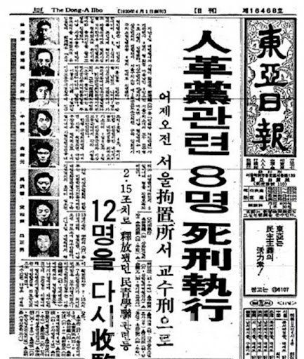 1975년 4월 9일 새벽, 사형 선고를 받은 8명에 대한 사형이 집행되었는데, 사형 판결이 확정된 후 불과 18시간 만의 일이었다.