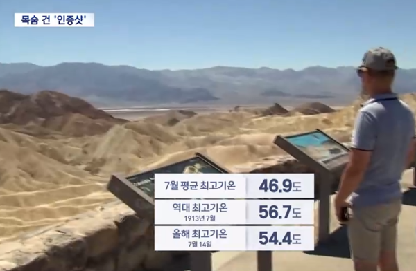 데스벨리에서 56.7도로 세계에서 3번째로 높은 기온을 기록하다