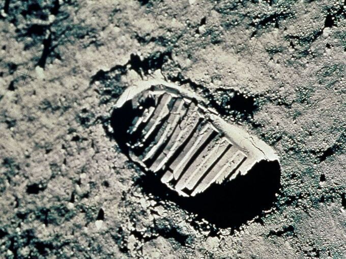 암스트롱은 착륙선의 다리 위에 내려서 달 표면에 역사적인 발자국을 찍었다. 암스트롱은 또, 중력이 지구의 6분의 1밖에 되지 않는 달 표면은 걸어 다니려면 아무 문제도 없고, 오히려 훈련보다 상당히 편하다라고 보고했다.