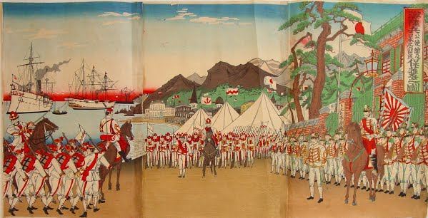 1894년 7월 25일, 아산 근해를 순찰하던 순양함 요시노, 나니와, 아키쓰시마로 구성된 일본 제1유격대가 청나라 순양함 제원(済遠)과 군함 광을(広乙)과 마주치며 청일전쟁이 시작되었다. 그리고, 1895년 3월 26일, 일본군은 타이완 부근의 펑후 제도를 희생자 없이 점령하면서 청일전쟁은 막을 내린다.