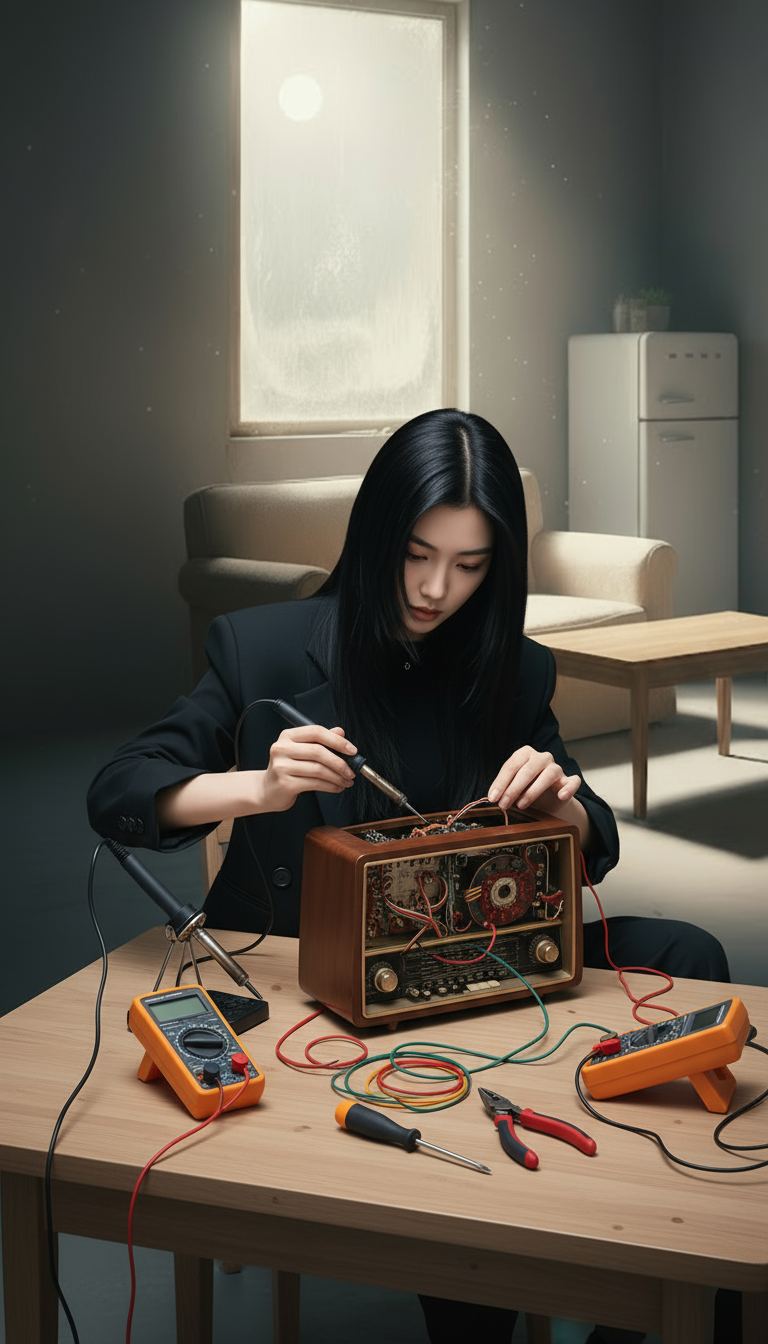 다음 날, 서윤이 잠깐 자리를 비운 사이, 여왕은 라디오 앞으로 다가갔다. 그녀는 익숙한 손길로 라디오의 나사를 풀고, 복잡한 내부 회로를 잠시 들여다보았다. 겉보기에는 아무것도 모르는 듯했지만, 그녀의 손은 그 어떤 도구보다도 정교하고 민첩했다. 그녀는 능숙하게 끊어진 전선들을 이어 붙이고, 헐거워진 부품들을 제자리에 단단히 고정시켰다. 그리고는 아무 일 없었다는 듯 다시 제자리로 돌아와 앉았다.