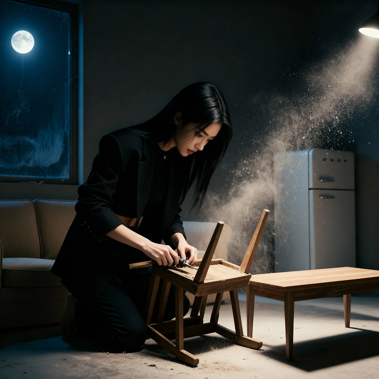 서윤은 자신의 손재주가 좋아졌다고 믿으며, 이제는 낡은 테이블의 삐걱거리는 다리를 고치기 시작했다. 여왕은 서윤이 끙끙거리는 것을 보면서도 모른 척했다. 그리고 밤이 되면, 서윤이 잠든 것을 확인하고 조용히 일어나 삐걱거리는 다리를 완벽하게 고쳐놓았다. 툴툴대면서도, 서윤의 작은 기쁨을 지켜주고 싶어 하는 여왕의 진심이 그들의 텅 빈 집에 가득 차오르고 있었다.