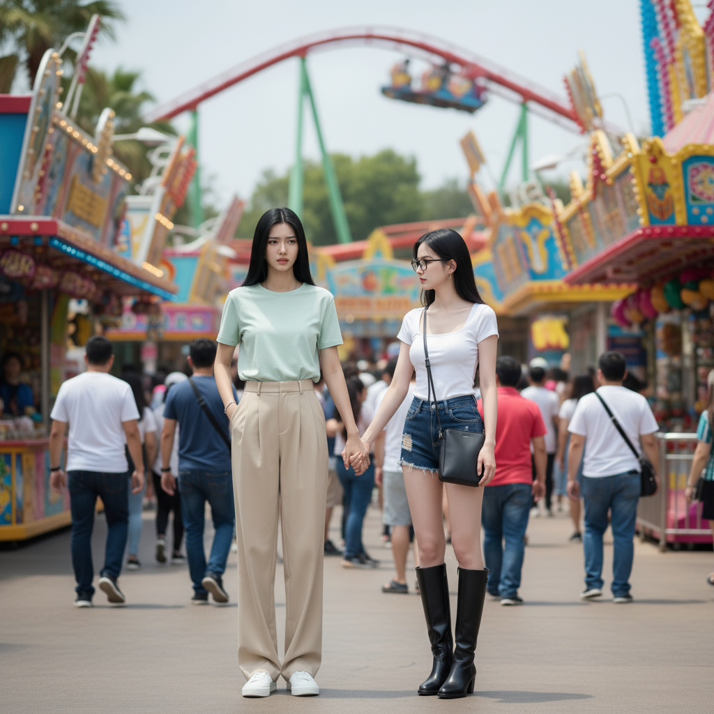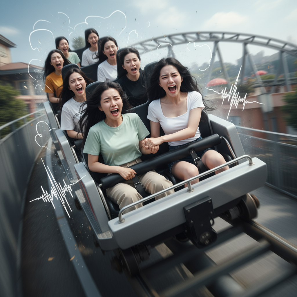 롤러코스터가 천천히 위로 올라가자, 서윤의 얼굴은 하얗게 질렸다. 그녀는 무서웠지만, 옆에 있는 여왕을 위해 애써 웃음을 지었다. 하지만 여왕의 얼굴은 이미 돌처럼 굳어 있었다. 이제까지 어떤 적 앞에서도 흔들린 적 없었던 여왕의 얼굴에 처음으로 '공포'라는 감정이 드러났다.