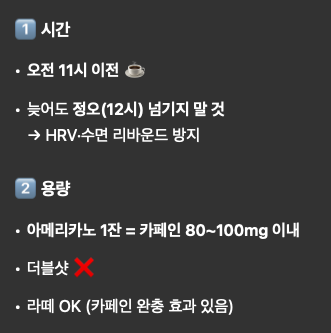 근데 커피가 떙기는걸 어떡하냐? 그러니 GPT가 이야기 해준 대로 12시 이전에 커피 마시는 것을 끝내야 한다. 나도 거의 2주 만에 커피라서 조금 생소하긴 하다.