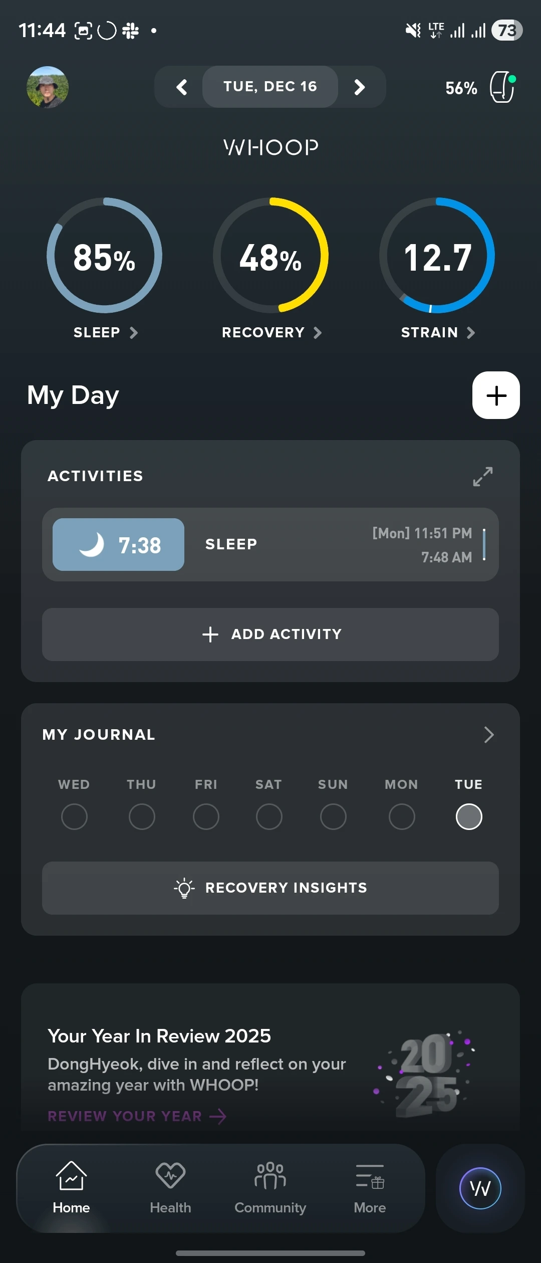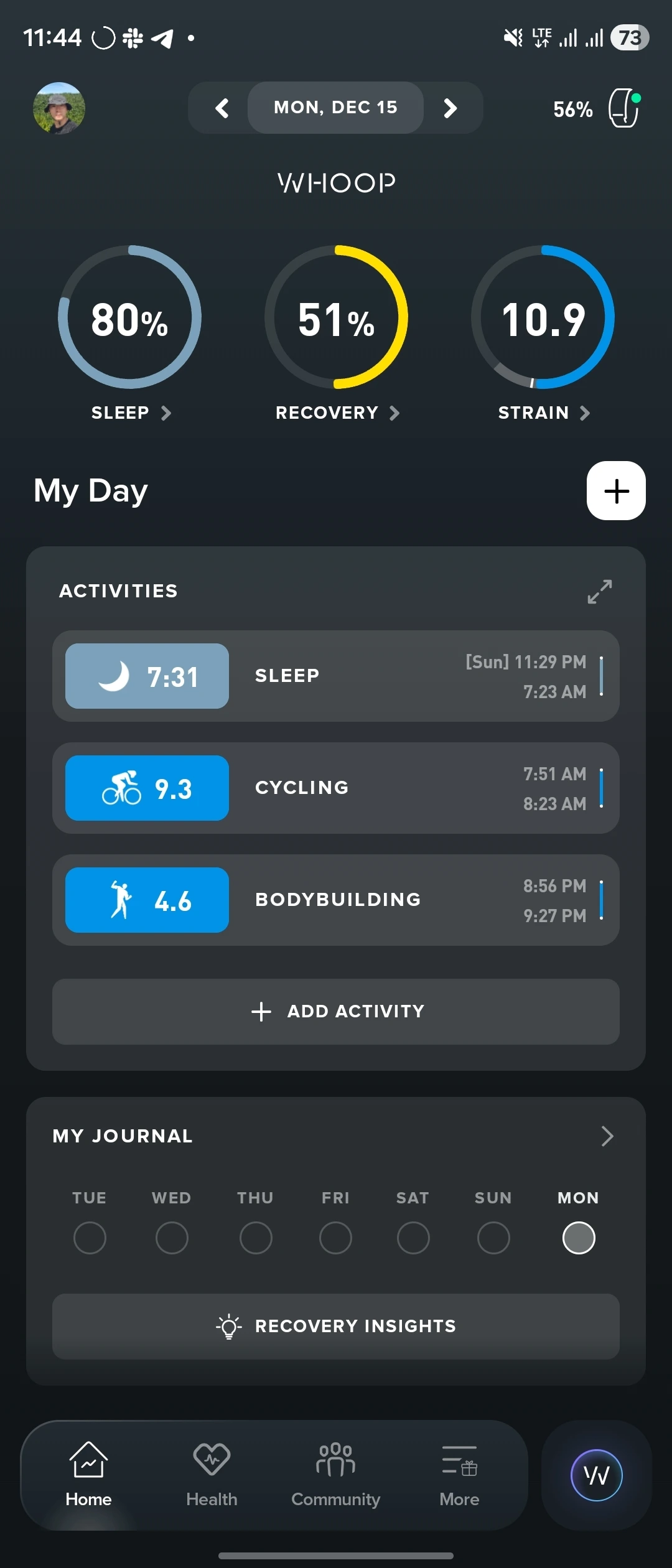 뿐만 아니라 저 3가지를 했을 때 그렇게 기분 좋은지 모르겠는데 하는 사람들은 자신의 신경계가 어떻게 반응하는지 체크해야 한다. 그건 WHOOP의STRAIN으로 체크할 수 있다.