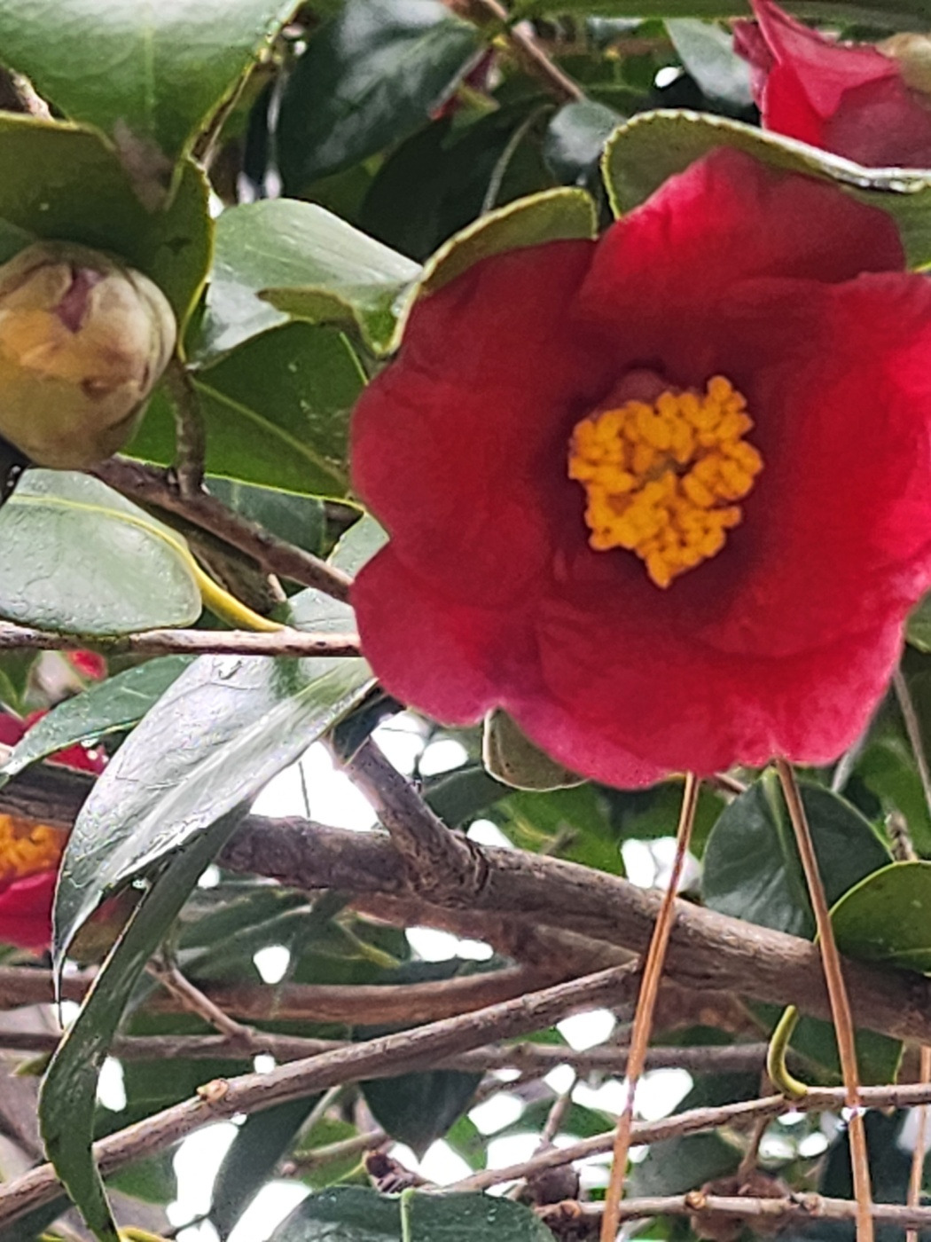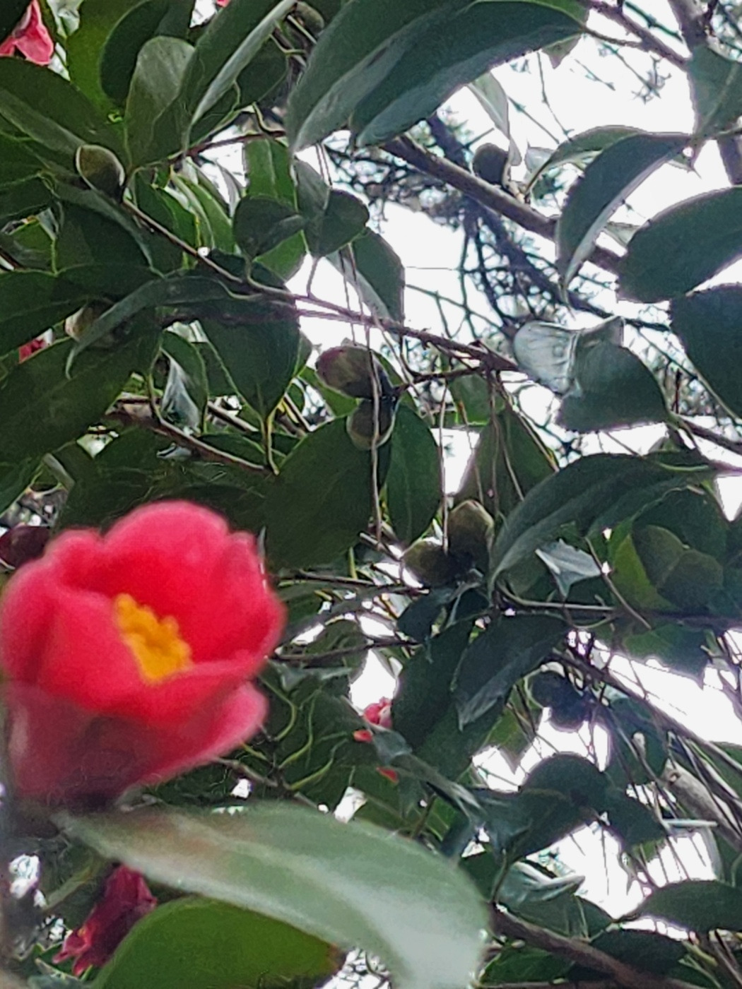 비바람이 부는 날에도 해운대 동백섬의 동백꽃이 피려고 몽우리를 맺고 있는 모습입니다.