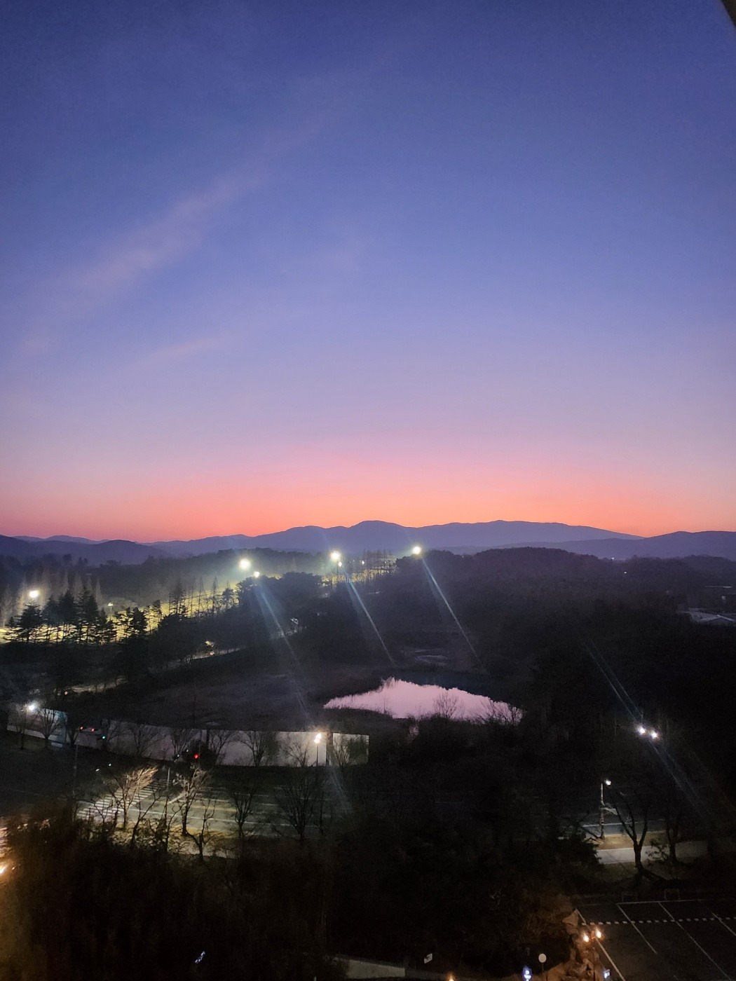 하늘의 보랏빛과 해뜨기 전의 붉은빛이