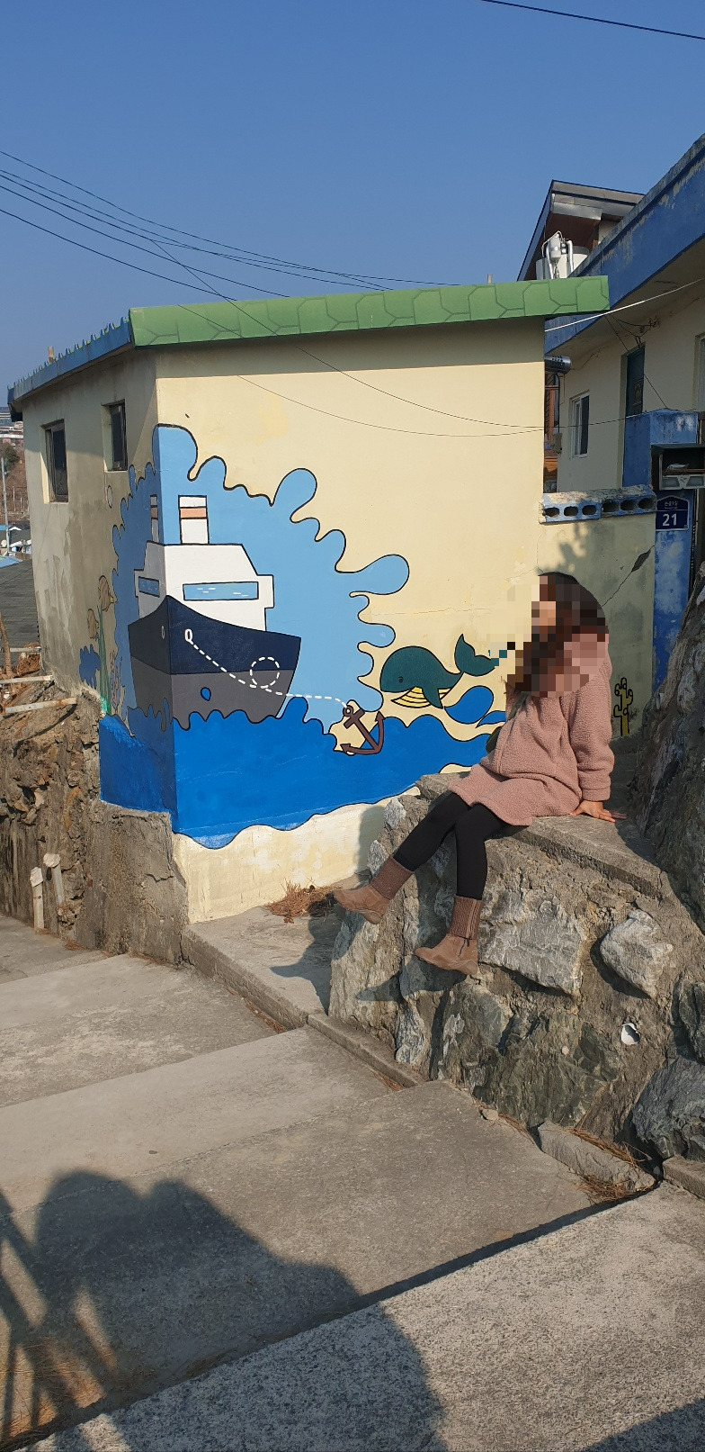 카메라 앵글을 갖다 대는 곳이 전부 작품이 되는 곳이었다. 예전 CF에서 나온 포 0 0 음료의 한 장면 속으로 걸어 들어온 기분이었다. 길을 따라 걸어가니 전망대도 나오고 예전 등대로 썼던 곳도 전시되어 있었다. 그대로 따라 걸으면 벽화마을인 논골담길이 나오는데 여기가 나의 찐 감동 스폿이었다. 어느 하나 놓칠 곳이 없었다.