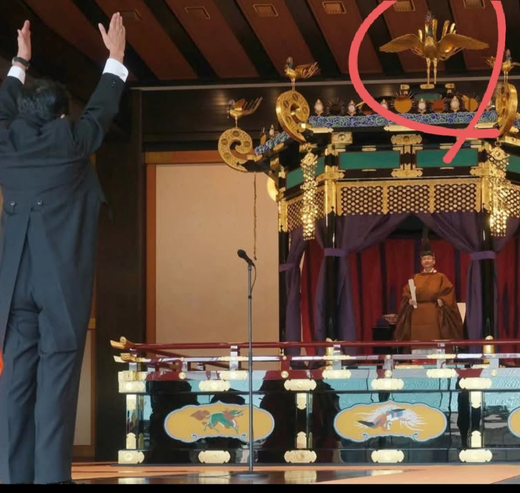 아베는 천황의 취임식 때 만세 삼창을 했다.