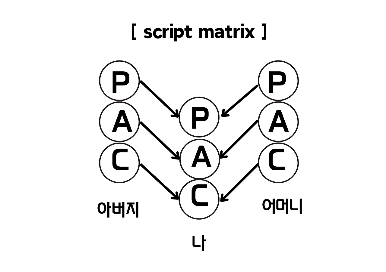 교류분석 상담사가 되기 위해 수련하는 과정에는 자신의 인생각본(life script)을 분석하는 것이 있습니다. 교류분석을 만든 Eric Berne은 "사람은 누구나 세 사람이다."라고 했습니다. 누구나 자기 안에 부모 자아와 어른 자아, 어린이 자아를 갖고 있으며 부모는 자신의 이 세 가지 자아상태를 통해 자녀에게 삶의 메시지를 전달합니다. 그리고 스트로크 이론으로 유명한 Steiner는 이러한 견해를 바탕으로 각본 매트릭스(script matrix)를 개발하였습니다.