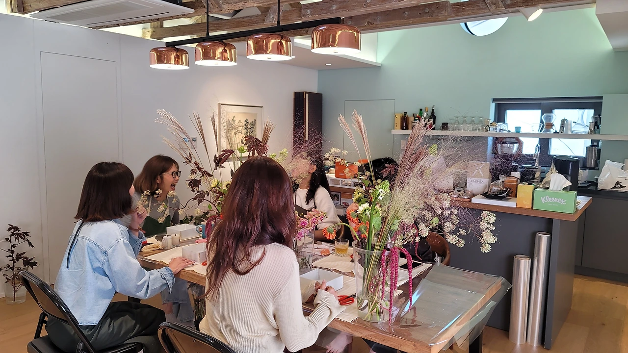 플라워클래스를 마치고 커피를 마시며 즐거운 수다와