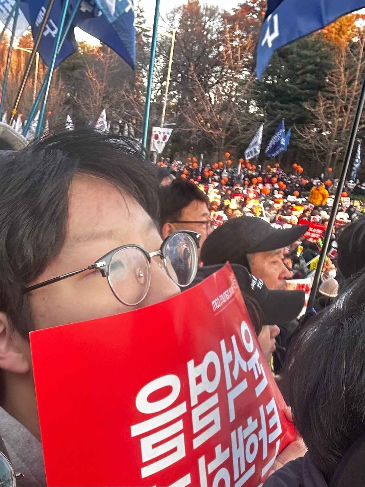 집회 현장은 뜨거운 열기와 진심 어린 목소리로 가득 차 있었다. 다양한 연령대와 계층의 사람들이 모두가 민주주의의 가치를 되찾고자 하는 한마음이었을 것이다. 한강 작가가 노벨상을 타던 오늘에, 과거 전두환 정권 시절 계엄과 민주화 운동을 떠올리지 않을 수 없었다. 권력이 국민의 목소리를 억압하고, 민주주의를 위협했던 그 시절의 어두운 역사는 오늘날에도 여전히 우리에게 경각심을 주고 있다.