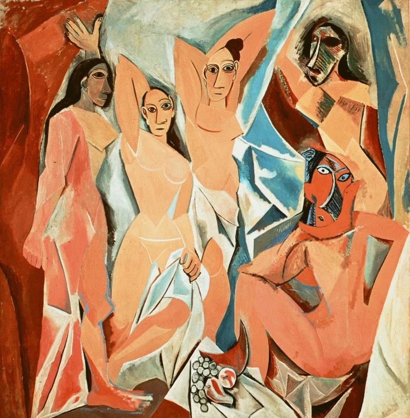 굉장히 어색한 이 그림은 1907년에 처음 공개되었을 때, 큰 화제가 되었습니다. 여신에 대한 묘사도 아니고, 인간의 육체적 건강함을 자랑하는 것도 아니면서 이렇게 우스꽝스러운 여인들은 여러 해석들을 내놓게 했습니다.