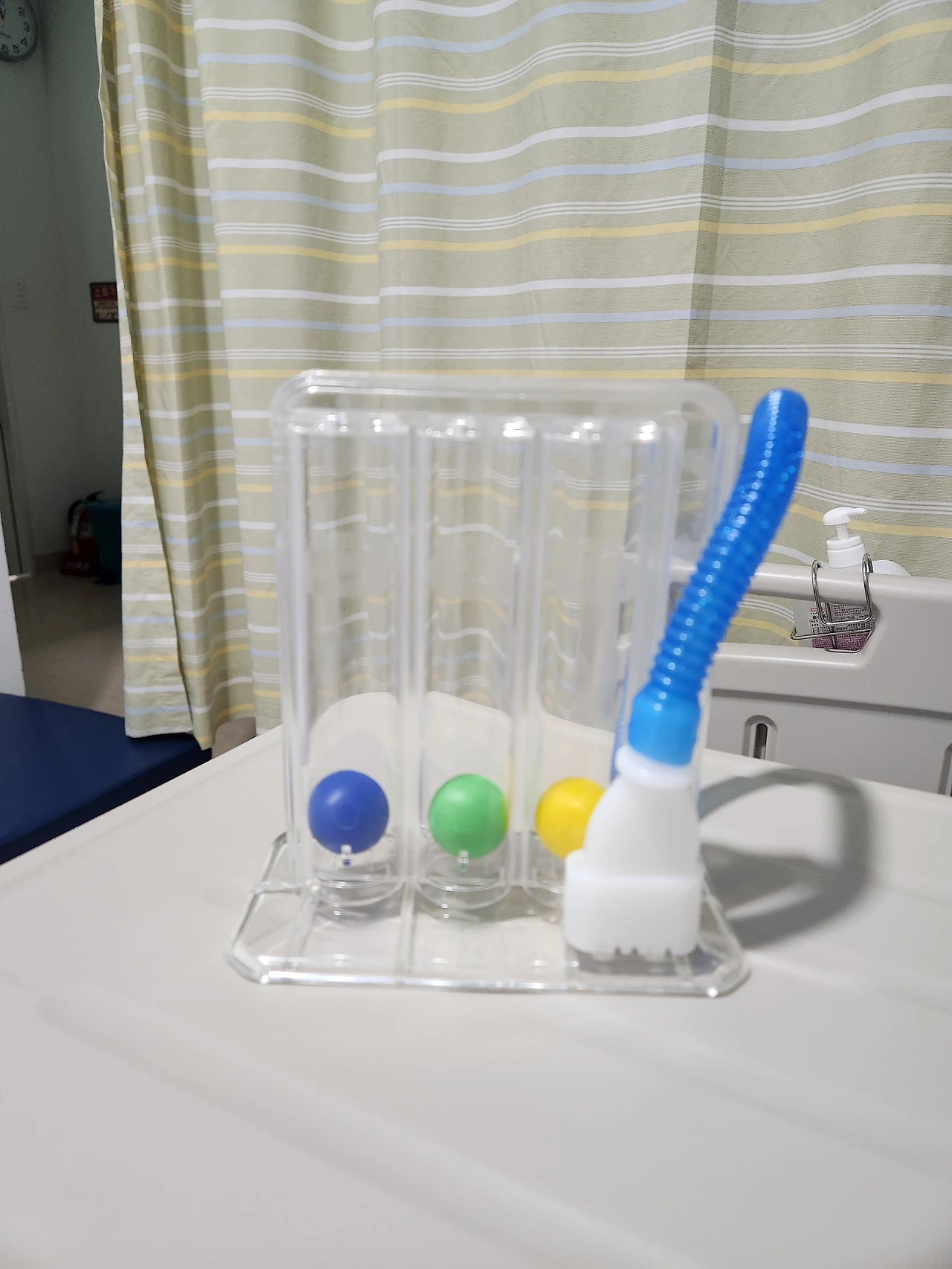 수술 이후 폐운동을 위한 기구였는데 간호사님이 80대 할아버지도 3개 쉽게 하신다고 미리 연습을 하라고 하셨는데.... 이런 난 아무리 해도 1개밖에 안 올라갔다. 이거 고장 난 거 아니냐고 하기까지 했는데 그냥 내 폐활량이 적은 것이었다. 회복 전도 이후도 1개가 내 최선이었다.