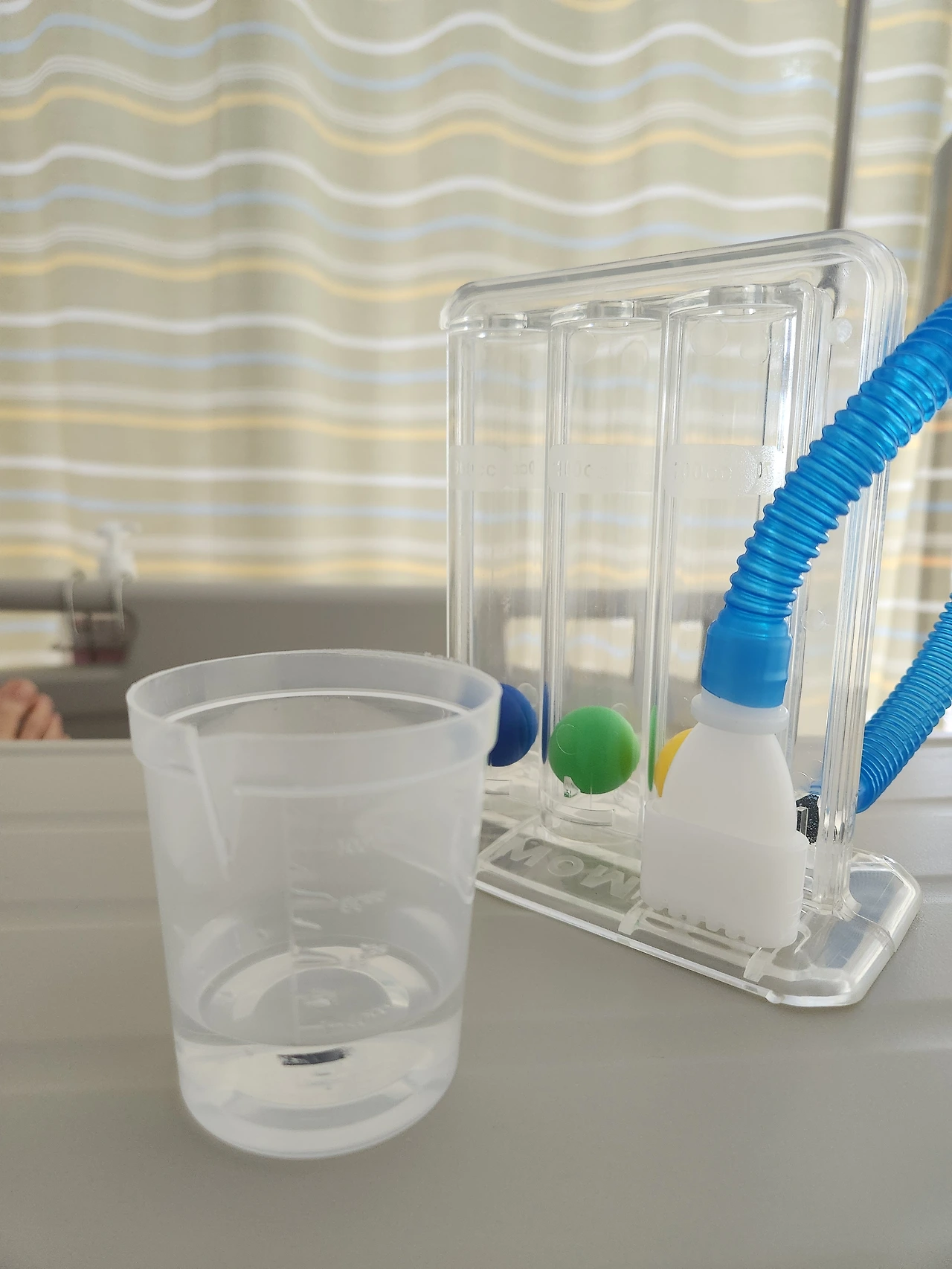 첫 물 30ml와 폐운동 기구~ 마실 수 있는 물은 요만큼!