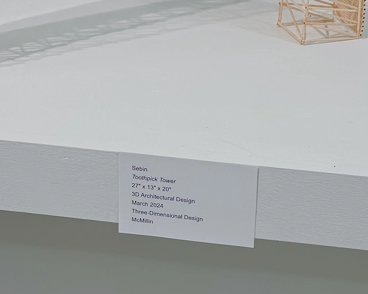 한 학기 동안 모든 수업의 과제를 단 한 번도 밀리지 않았고, 매 순간 내가 할 수 있는 만큼, 최대한 내 마음에 들게 하려고 노력했던 것 같다. 그런데 시간이 없어서 맘에 들지 않아도 대부분 제출은 했던 것 같다. 그중에 한 작품이 3D 수업에서 했던 '이쑤시개로 건물 만들기' 과제였다. 사실 첫 과제였어서 의욕이 넘쳤던 것 같기도 하다. 다이소에서 이쑤시개 2통을 사 거대한 이쑤시개 건물을 만들었다. 완성시키는데 2주는 걸렸던 것 같다. 그런데 나도 그런 과제는 처음 해보는지라 생각만큼 완벽하게 나오진 않았지만 시간이 없어 그냥 제출했던 기억이 있다. 그런데 정말 운이 좋게도 교수님이 정말 좋게 봐주셨고, 5월에 학교에서 열리는 '학생 전시회'에 전시해보지 않겠냐는 제안을 받았다. 완벽하지 않아도 정성이 많이 들어가서 그 점을 좋게 봐주셨나 보다. 그렇게 기분 좋은 피드백을 받고, 드디어 5월이 되어 교수님이 다시 한번 전시회 작품 제출에 대한 안내를 따로 해주셨고, 작품을 전시하게 되었다. 작품을 학교에 가져가는 과정, 전시회에 제출하려고 영수증을 쓰는 과정 모두 나에게는 처음 겪는 일이었고, 정말 뿌듯했다. 그리고 마침내 전시회가 열렸고 내 작품을 학생 전시회에서 볼 수 있게 되었다.