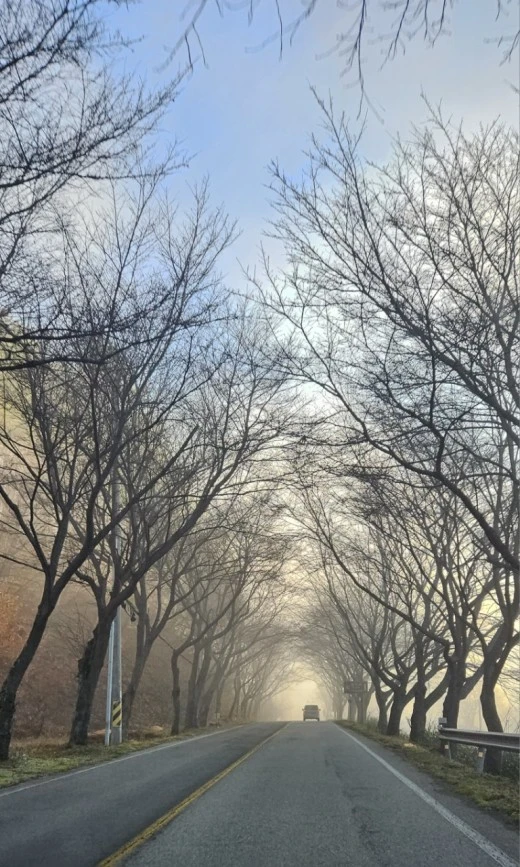 안개가 자욱한 길에 매료되어 엉뚱한 상상을 하며 수다를 떨었다. 내 엉뚱한 수다에 운전대를 잡은 남편은 말없이 웃고만 있다.