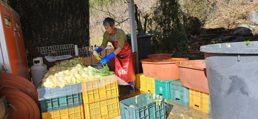 진주에 다녀온 후, 남편은 배추를 씻기 시작했다.