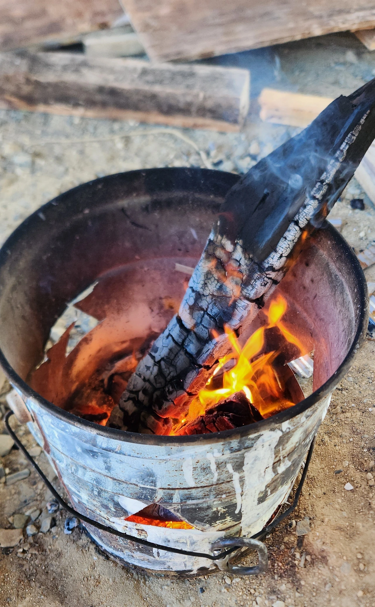 낮에도 추위는 사그라들지 않았다. 오들오들 떨며 일하고 있을 남편이 걱정되었다. 추운데 일하기 괜찮냐고 문자를 보냈다. 남편은 깡통 안에서 나무가 타고 있는 사진을 보냈다. 불타는 사진을 보니 그나마 마음이 놓였다.