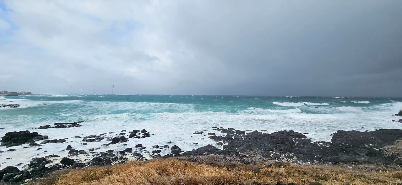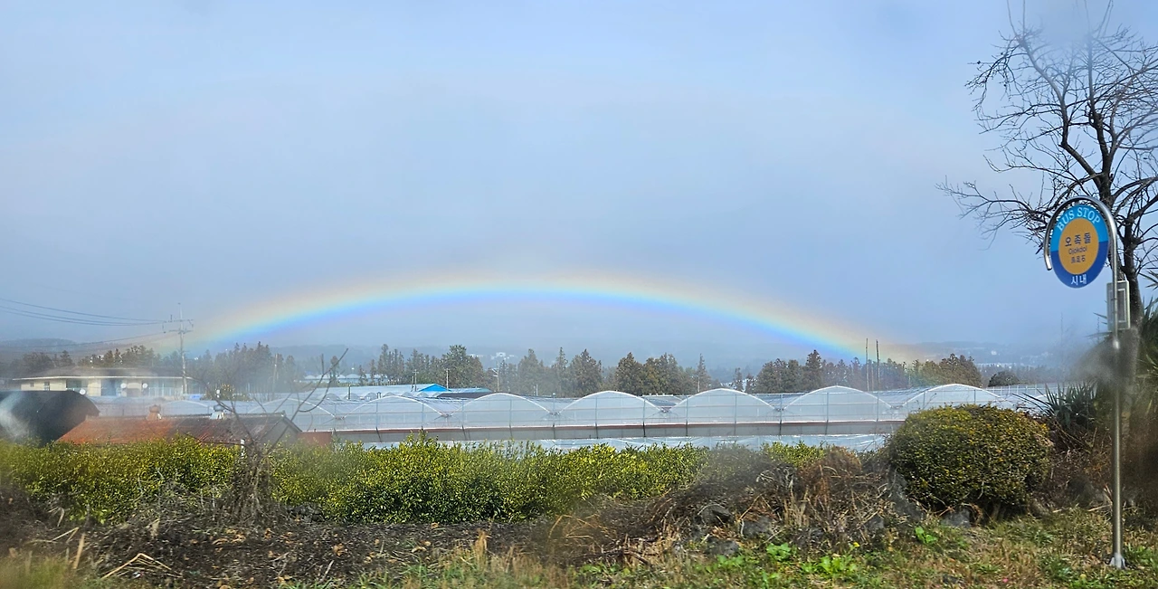 저녁을 먹으려고 숙소로 돌아오는 길에 커다란 무지개를 만났다. 일곱 빛깔로 피어난 무지개는 도로를 달리는 우리 차를 계속 따라왔다. 나는 해안도로를 달리는 차 안에서 무지개를 바라보며 환호성을 질렀다. 해안도로를 달리던 차는 협재 바닷가에 멈췄다. 나는 바다 건너에 보이는 비양도를 마주하고 섰다. 제주의 바람은 여전히 강하고 거친 파도는 나를 향해 달려왔다. 제주도에 바람은 살아있다. 거친 파도도 살아있다. 그리고 살아 있는 박물관 속에 우리 가족이 함께하는 여행의 추억도 살아있다.