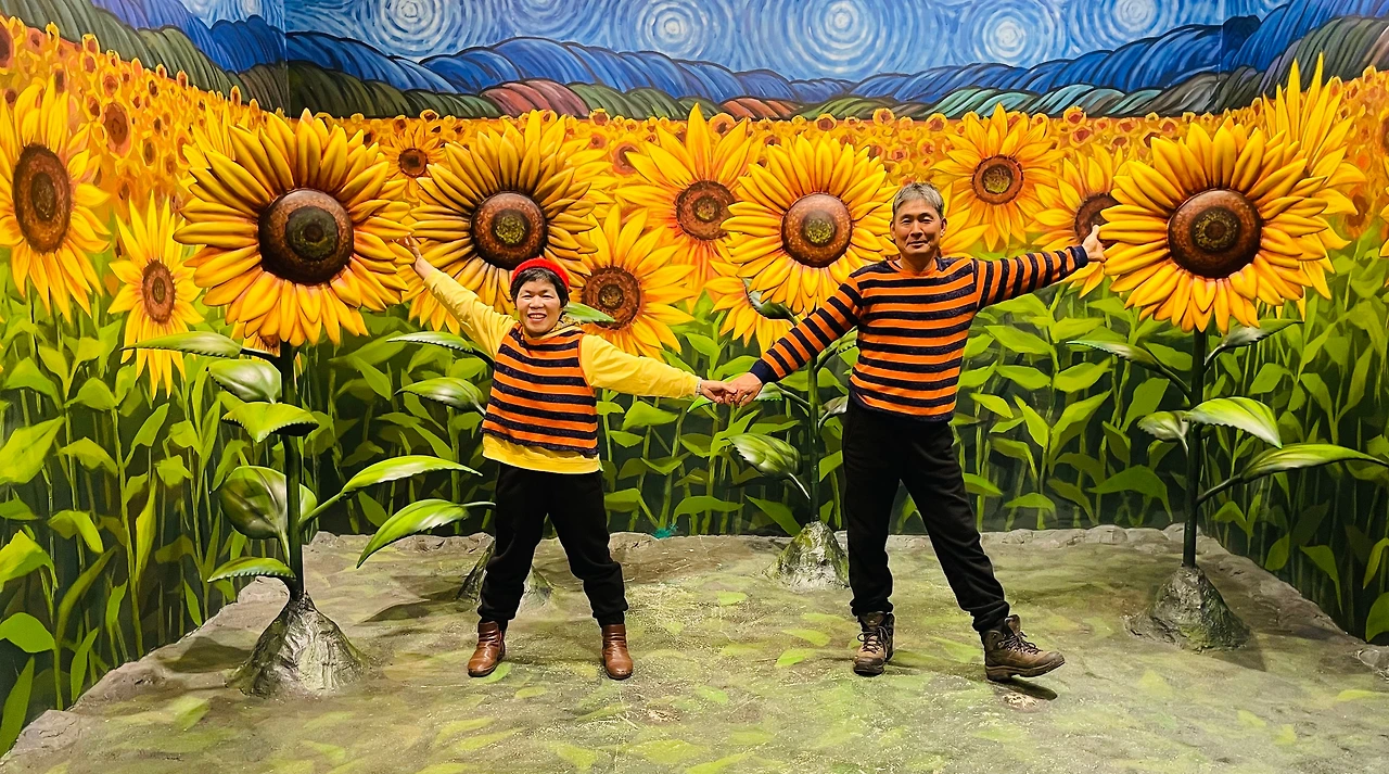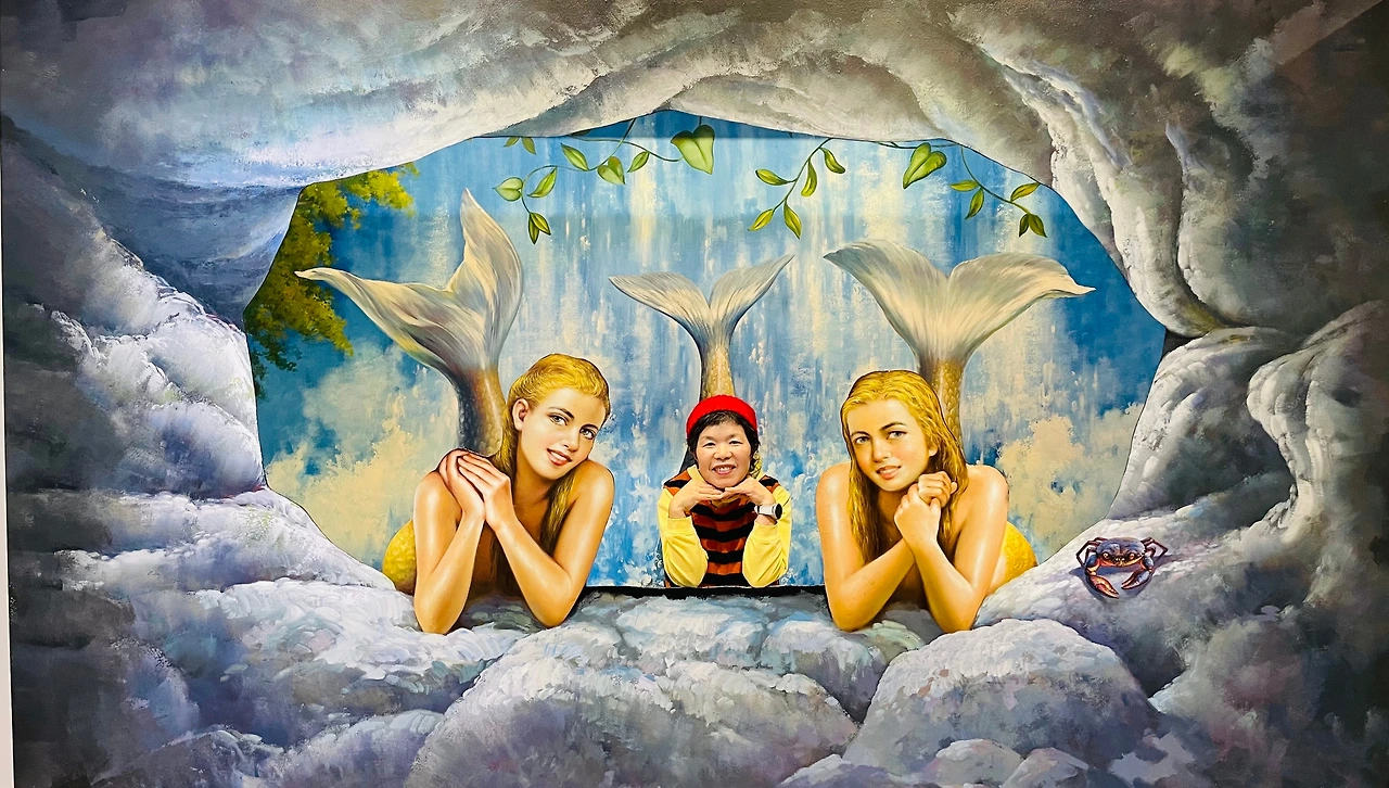 실내의 조명은 화려하지만 밝지 않았다. 벽에도 바닥에는 여러 종류의 그림이 그려져 있었다. 유명한 영화의 한 장면도 있고 동화 나라도 있고 바닷속 풍경, 고흐의 그림까지 제법 눈에 익은 그림들도 보였다. 그림이 있는 곳 아래 바닥에는 포토존이 카메라 모형의 그림으로 표시되어 있다. 아이들은 그림 위에서 부모들이 요구하는 포즈를 취했고 부모들은 그 모습을 찍느라 분주했다. 우리 가족도 그림의 분위기와 어울리는 자세를 취하며 사진을 찍었다. 찍은 사진을 확인해 보니 그림이 입체적으로 보이는 착시 현상이 나타났다. 여러 번 찍다 보니 실감 나게 자세를 잡는 요령도 자연스럽게 터득했다.
