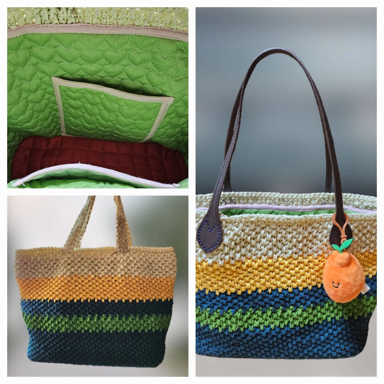 2주 전, 글쓰기 문학회 모임에 들고 간 가방은 코바늘로 뜬 뜨개가방이었다. 지난가을에 겉감만 떠 놓고 바쁘다는 이유로 안감을 마무리하지 못했다. 작업실에서 이리저리 차이던 것을 마무리해서 들고 간 가방이었다.