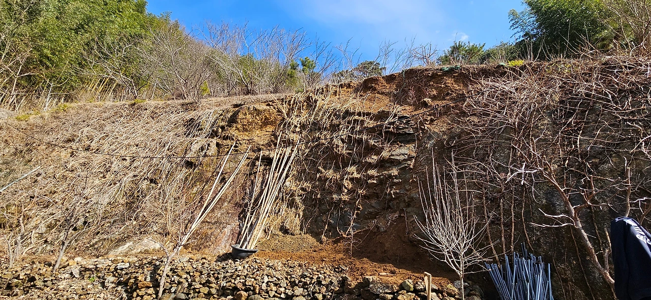 집 뒤에는 산을 깎아 밭을 만들면서 직벽 절개지가 생겼다. 몇 년이 지났지만 해마다 겨울이 되면 흙이 흘러내렸다. 이번 겨울에도 절개지의 흙은 얼었다 녹았다 하면서 흘러내려 산을 만들었다. 며칠 째 많은 비가 오면서 바위에서 떨어져 나오는 돌과 함께 다시 밭으로 떨어졌다. 열흘 가까이 내리던 비는 멈추고 드디어 햇살이 보였다.