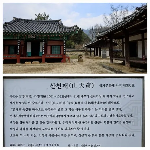 남명매를 보고 길 건너에 있는 남명기념관으로 갔다. 너른 마당으로 들어서니 젤 먼저 산수유나무가 활짝 웃으며 우리를 반겼다. 산수유나무를 지나면 남명조식 선생님의 학문과 정신을 기록해서 보관해 놓은 건물이 보인다. 건물 주변에는 여러 그루의 매화나무들이 경쟁하듯 꽃을 피우고 있다. 나는 매화의 향기에 취해 마당을 걷고 걸었다. 선비의 정신이 살아 있는 산청, 전통을 자랑하는 매화의 향기가 춤을 추듯 날아다니고 있는 산청, 나는 매화의 향기에 취해 산청을 걷고 있다.