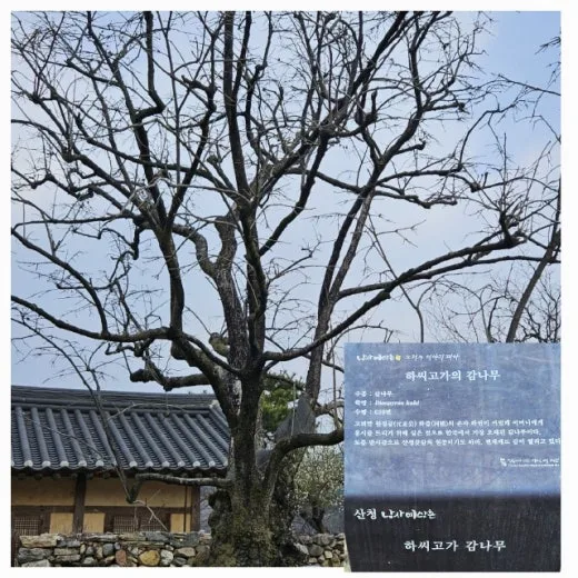 다음으로 620년 된 감나무를 보러 하씨고가를 찾았다. 감나무의 굵은 둥치는 오랜 세월을 버티느라 속은 텅텅 비었고 겉가죽만 남아서 세월을 버티고 있었다. 그럼에도 당당함을 잃지 않고 서 있는 모습에 저절로 고개가 숙여졌다. 하 씨고가 정원에 700년 전에 심은 원정매는 죽고 곁가지에서 나온 후계목에서 분홍색의 꽃이 자태를 뽐내며 그윽한 향기를 뿜어내고 있다.