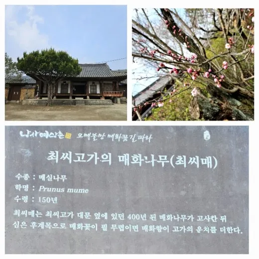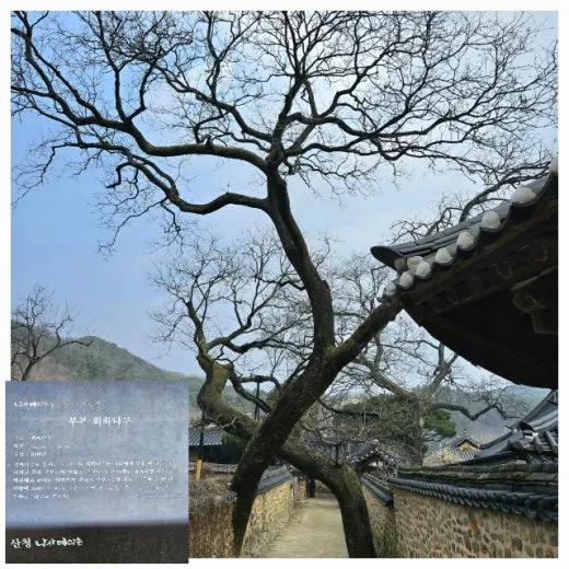 최씨고가의 최씨매는 150년 전에 심은 나무라는데 건강상태가 좋지 않은지 꽃을 제대로 피우지 못한 모습이 안타까웠다. 다시 건강을 찾기를 기도하며 부부회화나무를 보러 갔다.