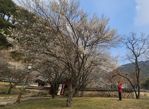 다음은 한국의 아름다운 마을 1호로 지정된 남사예담촌 한옥마을로 갔다. 주차장에 차를 세우고 이 씨 고택부터 찾았다. 그곳에는 수령이 150년이 지난 이씨매가 있다. 하얀 꽃이 피는 이씨매는 은은한 향기와 품격 있는 모습으로 꽃이 피기 시작하면 사진작가들이 꽃을 찍으려고 모여든다. 이 씨 고택의 매화는 이제 막 꽃망울을 터트리기 시작했다