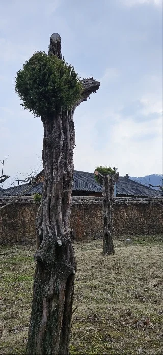 최 씨 고택 바깥 마당에 서 있는 두 그루의 나무는 멋진 조형물을 떠 올리게 한다.