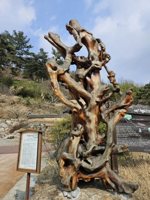 기산국악당을 나와 이사제로 가는 길가에는 나무뿌리로 만든 조형물이 서 있다.