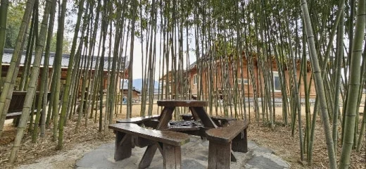 대나무 숲이 아름다운 꽃자리 카페는 인생사진을 찍는 명소이기도 하다. 여러 종류의 차와 커피를 판매한다.