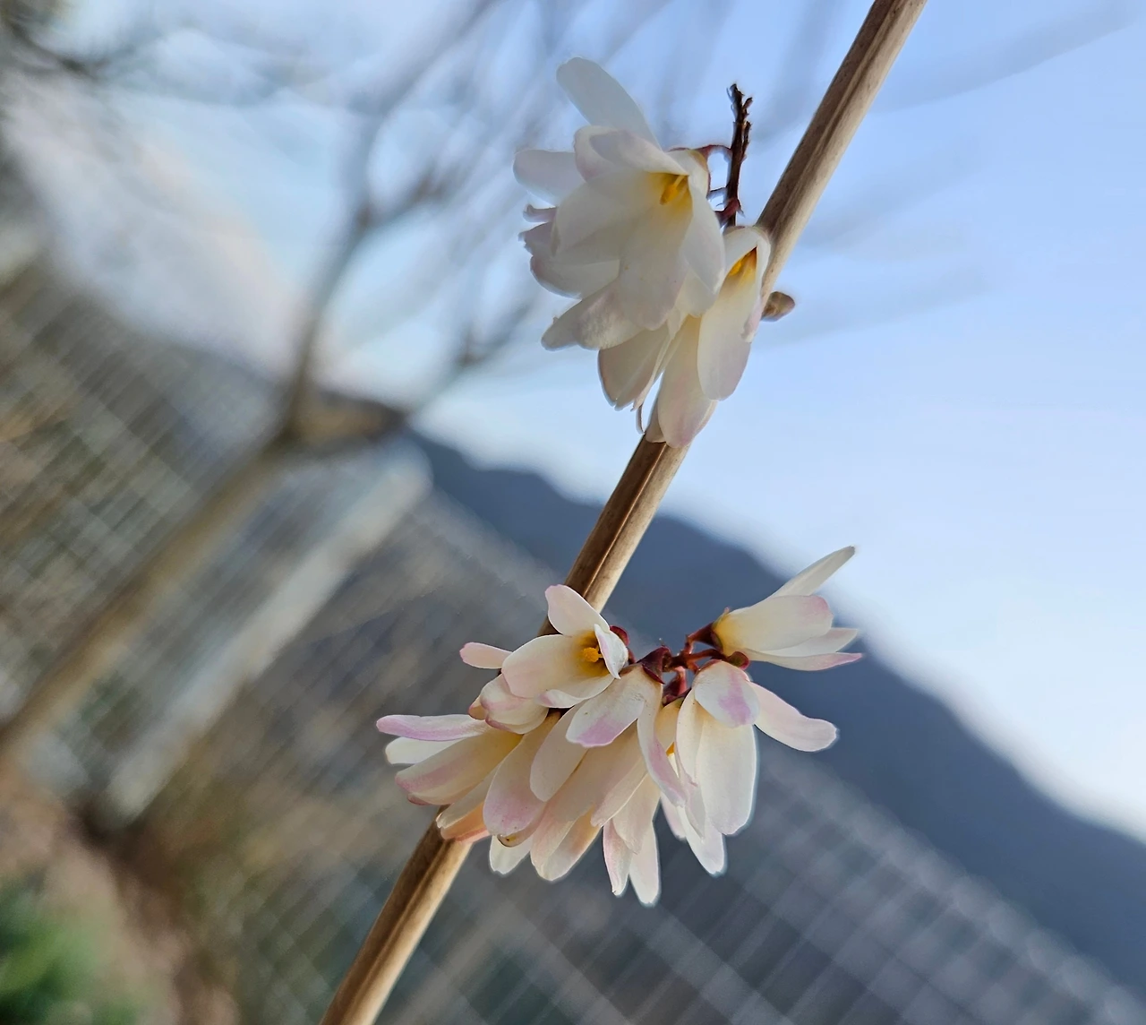 한참을 산을 걷다 내려왔다. 마당 울타리에 지난해 심어 놓은 미선나무가 환하게 웃고 있다. 지난해에 심었기에 꽃이 피리라고는 생각지도 못했다. 반가운 마음에 미선나무에게 다가갔다.