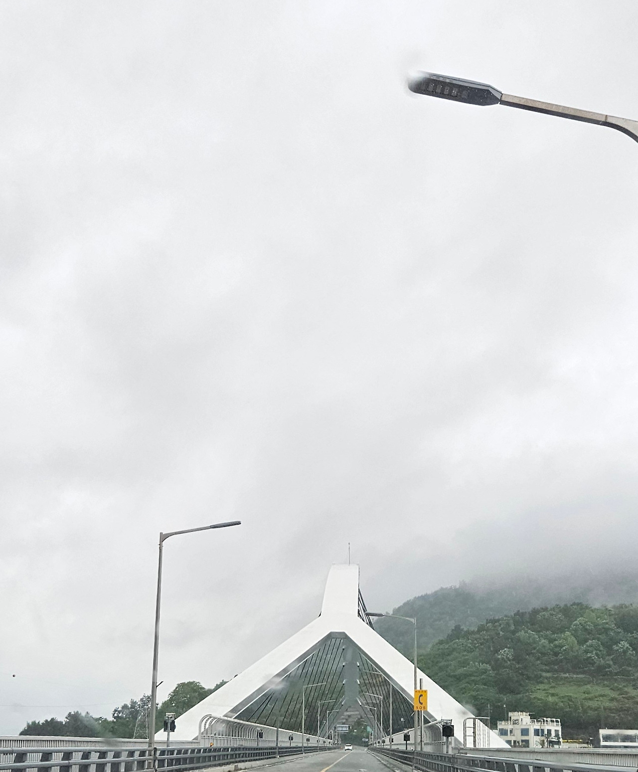 그리고 곯아떨어졌다. 얼마나 잤을까? 갑자기 차 지붕을 뚫을 기세로 두들겨 패는 빗소리에 잠을 깼다. 장맛비처럼 내리는 기세 좋은 비는 아침까지 이어졌다. 비로 인해 아침을 해 먹을 수가 없다. 남편은 나가서 사 먹자고 했지만 시골엔 아침식사를 파는 식당이 보이지 않았다. 우리는 목적지를 팔영산 아래 능가사로 정하고 출발했다. 가는 길에 편의점에 들러 컵라면을 샀다. 능가사 주차장에서 커피포트에 물을 끓여 컵라면으로 아침을 해결했다. 능가사를 걸어야 하는데 차에는 우산이 한 개 밖에 없었다. 폭우로 인해 우산 하나로 둘이 움직이는 건 무리였다. 남편은 차에 있을 테니 혼자 다녀오라고 했다. 나는 우산을 쓰고 절 안으로 들어갔다. 능가사는 생각보다 아주 작은 절이었다. 이른 아침의 능가사는 빗소리만 요란했다.
