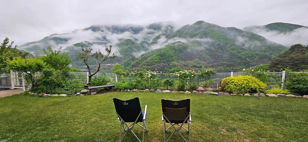 나는 '비가 와도 좋다. 또 떠나자!'라며 막걸리 잔을 부딪혔다. 비님이 만들어 낸 앞산의 황홀한 풍경을 바라보며 우중여행을 마무리했다.